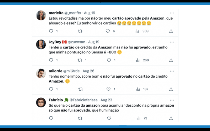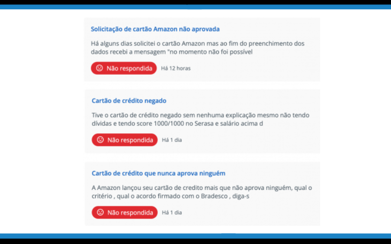 Confira a seguir alguns dos relatos sobre o cartão de crédito Amazon negado: