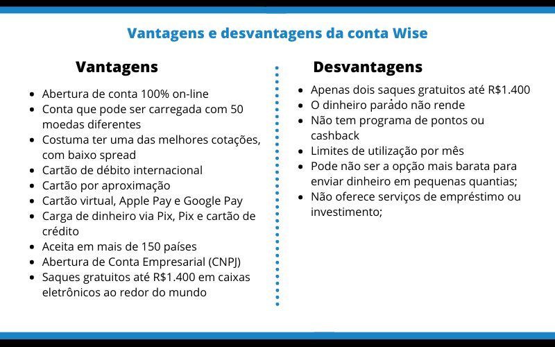Vantagens e desvantagens da conta Wise